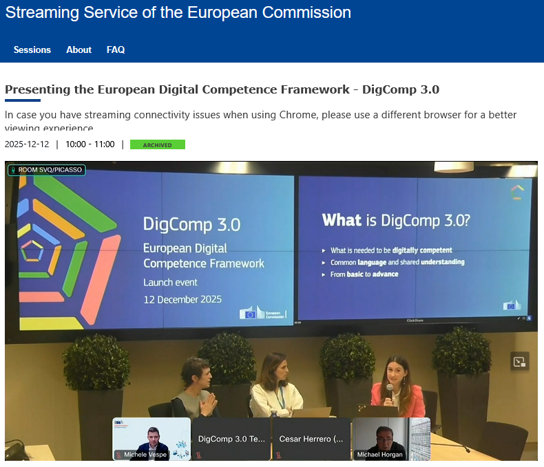 My engagement with DigComp is not new. I was deeply involved in the development of DigComp 2.2, coordinating the Data Literacy working group. That work later bifurcated into two strands: one focused on informational data literacy (reading and using data), and another addressing algorithms, data capture, and AI systems in what was still a pre-generative-AI phase. DigComp 2.2 was published just a few months before November 2022, when the sudden public release of ChatGPT dramatically reshaped both public and academic debates. Unsurprisingly, the framework became rapidly outdated.